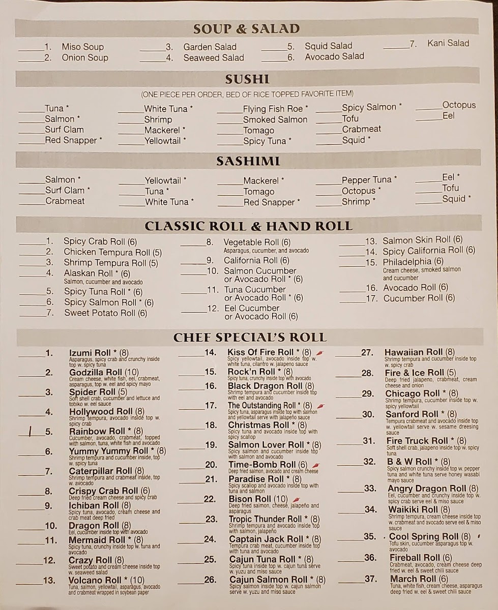 The all-day offerings include classic and hand rolls, featuring favorites like the Spicy Crab Roll and the ever-popular California Roll, both priced affordably at $7.99. For lunch, indulge in the Sushi & Sashimi Lunch for a delightful medley of flavors at just $19.49.